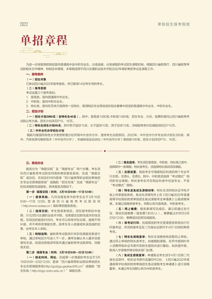 2022年四川交通职业技术学院单独招生报考指南
